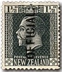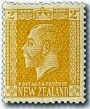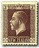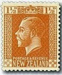 The King Edward VII stamps had only been on issue for six months when he died in 1910 and his son King George V ascended to the throne. It was quickly decided that a new set of stamps should replace the Edward VII stamps, but it would be five years before the new set was issued. There were various reasons for the five year delay - difficulty finding a designer, difficulty sourcing appropriate inks, and the perfectionist nature of the then Postmaster-General Sir Heaton Rhodes, himself a keen philatelist. Rhodes was keen to return to the simplicity of the 1855 Chalon Heads and the English 1840 penny black and two pence blue stamps. If you compare the George V stamp on the left with the English 1d Black on the right, you can see how closely they resemble each other.The initial issue contained the 1½d, 2d violet, 2½d, 3d, 4d yellow, 4½d, 6d, 7½d, 9d and 1/- stamps. The 1½d, 4½d and 7½d stamps were new values introduced for parcel post and it was not thought necessary to have 5d and 8d values. All this careful planning came unstuck when World War I began and a halfpenny tax was imposed on all mail other than newspapers. As the new issue did not have 5d or 8d stamps, the Edward VII issue stamps continued in use until 1922 when 5d and 8d recess print stamps were finally introduced. However, within a week of issue of the 8d blue it was realised that the colour was too easily confused with the 2½d stamp, so the stamp was reprinted brown as the 7½d brown stamp had been withdrawn by that stage. This ought to have made the 8d blue stamp very rare, but pressure from stamp collectors forced the post office to continue selling the stamps.