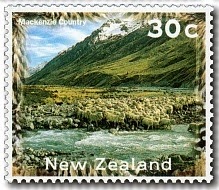 Tory Channel is familiar to generations of New Zealanders who have crossed the Cook Strait between the North and South Islands. Steamers and ferries heading south from Wellington for the railhead terminal at Picton have always used Tory Channel because the narrow, twisting passage provides a nice shortcut. Generations of passengers have welcomed their arrival in the channel for its waters are always calm - in marked contrast to the often storm-tossed Cook Strait. Tory Channel is part of the complicated network of waterways making up the Marlborough Sounds and was named after the survey ship Tory which navigated its tricky path in 1839. This stamp is famous for some printing errors which can be seen further down this page.