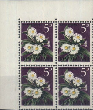 Right-hand Block - 1960 2½d Titoki - Yellow is omitted from this block.