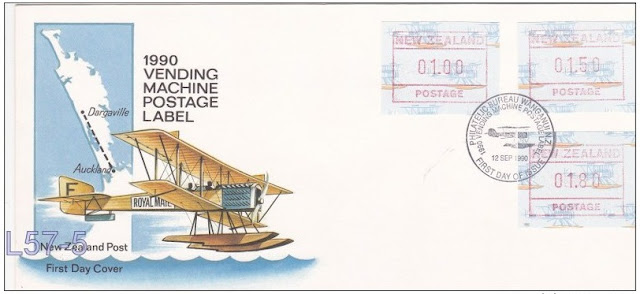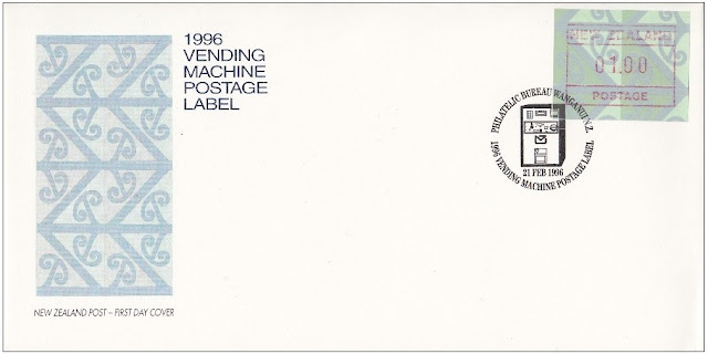 New Zealand trialled these labels in 1984 and continued to use them through until the mid - late 1990s. It would seem that like was discovered in Great Britain, this system of per-paid postage was not completely successful. This post will follow the story of New Zealand Frama Stamps from their trial in 1984 through to their last issue in 1996. Along the way we will also look at First Day Covers and flaws where the vending machine misprinted.