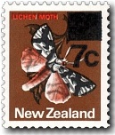 2c - Tussock Butterfly. 3c - Lichen Moth. 4c - Puriri Moth.