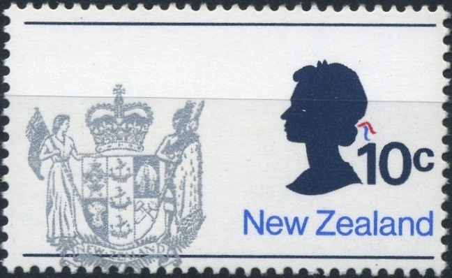 1970 Pictorials 23c with a large print flaw over WZ of New Zealand. It appears to be a drop of something like solvent that landed on the plate so it won't except the black colour.