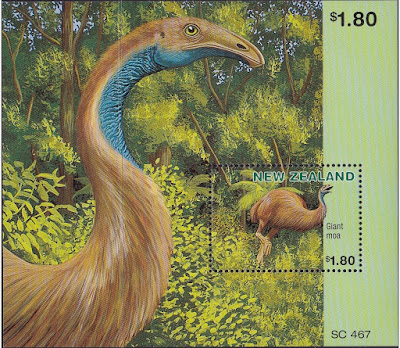 This stamp and the miniature sheet both feature Giant Moa (Dinornis Giganteus).