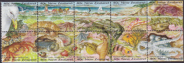 New Zealand is home to a wide range of creatures that creep, crawl, slither and fly. In this issue, New Zealand Post issued 10 self-adhesive stamps in a booklet format, featuring ten of these Creepy Crawlies.