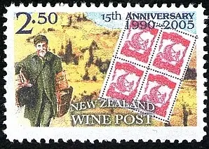 2007 New Zealand Wine Post Export stamp with a flawed word in the selvedge.