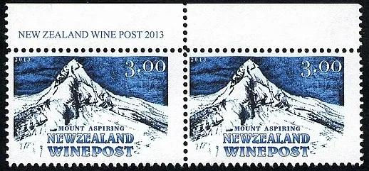 Left-hand - Joined pair with the name of the name of the issuer "New Zealand Wine Post" and the four stars of the Southern Cross in the top selvedge.