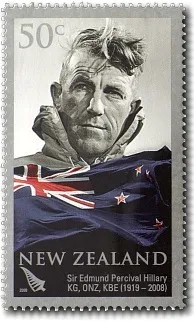 In November 2008, New Zealand Post was honoured to release five stamps, a first day cover and a presentation pack as a tribute to ‘our’ Sir Ed – an ordinary man who achieved extraordinary things, who tackled everything from aircraft navigation to beekeeping, mountain climbing to jet-boating, and international diplomacy to becoming the only living New Zealander to appear on our $5 note.