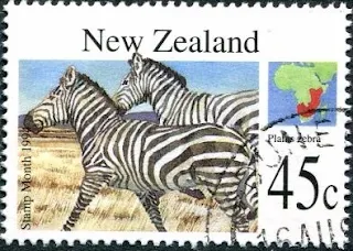 It seemed strange that NZ Post would go off and feature animals from other countries like in this issue but there is a good explanation. Wild animals have always been a source of fascination amongst children and it was this subject that was selected for the 1994 stamp issue that coincided with Stamp Month - a month-long promotion each year that promotes stamp collecting among children,